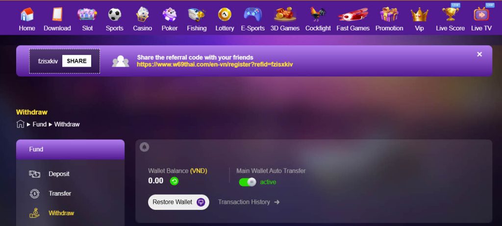 ขั้นตอนการถอนเงินผ่าน w69 slot ทาง เข้า